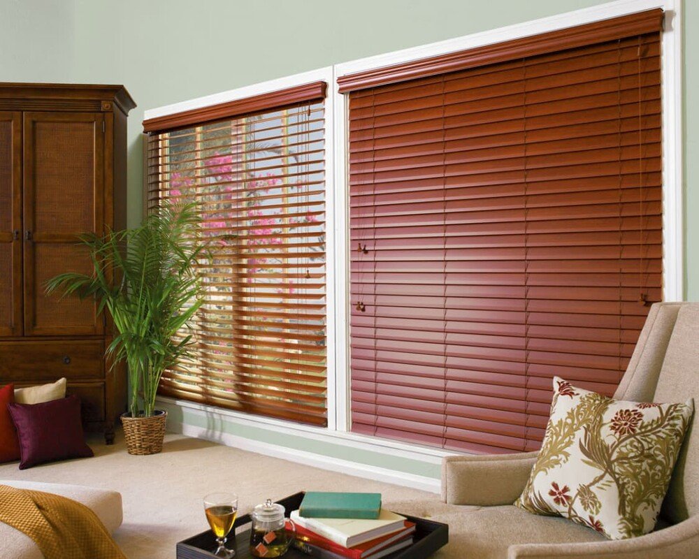Коричневые деревянные жалюзи универсальны и подходят для большинства интерьеров (от классических до современных), привносят в пространство теплоту и натуральность.